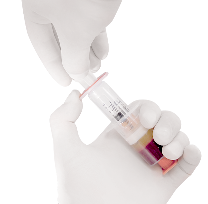 Le Plasma Riche en Plaquettes est un produit dérivé du sang, obtenu après centrifugation et à partir d’un prélèvement sanguin. Sa concentration élevée en plaquettes et en protéines plasmatiques (au moins deux fois supérieure à celle du sang total)1 permet d’accélérer la régénération tissulaire après injection dans la zone lésée du patient.
