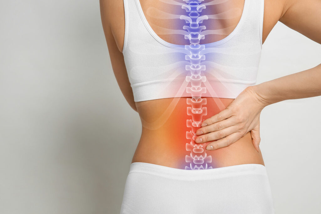 La douleur est généralement provoquée par l’inflammation des structures de la colonne vertébrale, tels que les disques intervertébraux, les facettes articulaires et l’articulation sacro-iliaque, qui subissent une dégénérescence chronique en réaction à des contraintes mécaniques non physiologiques.